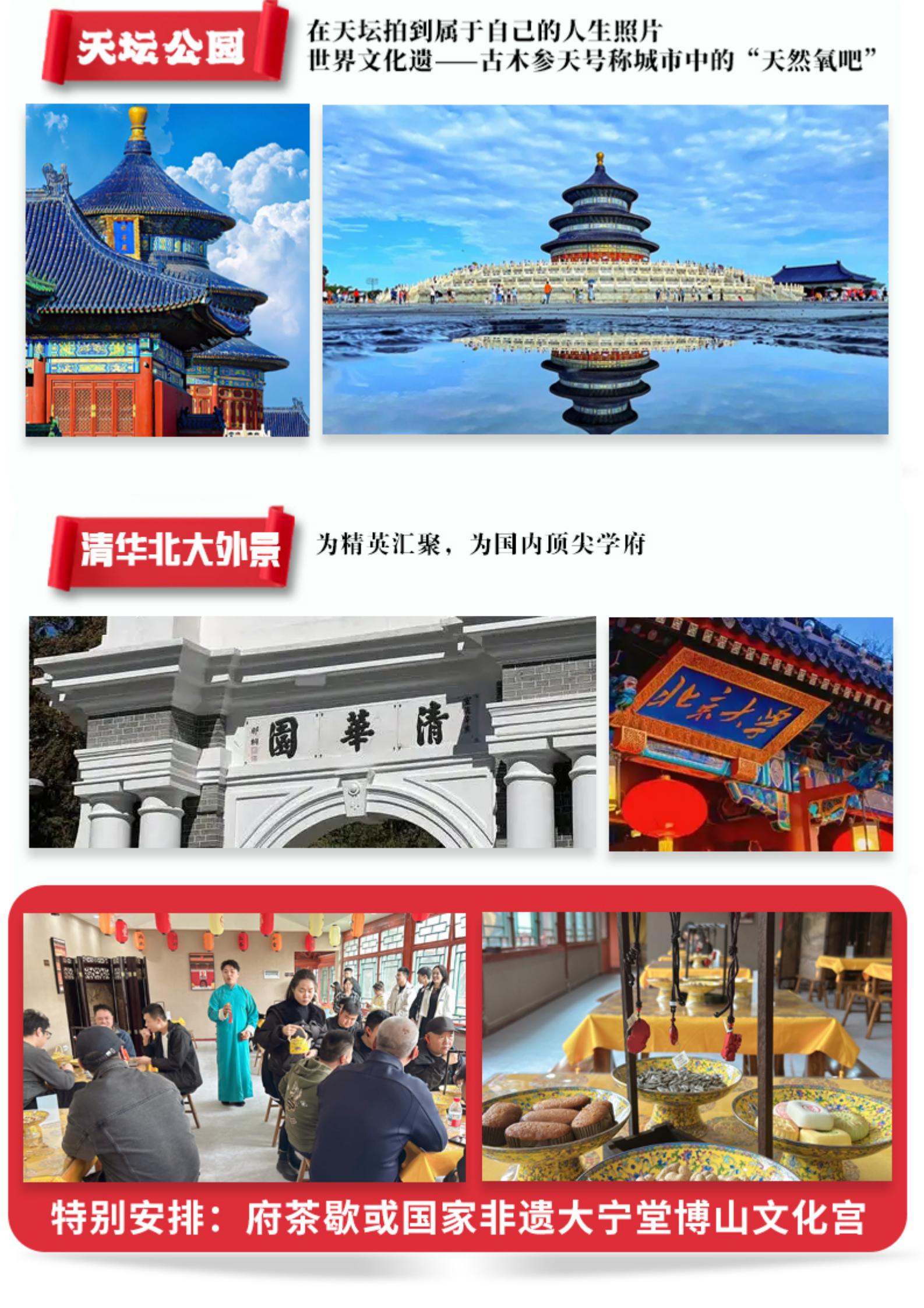 【什刹海风景区-老北京胡 同游】游览冯小刚导演新电影《老炮》实景拍摄地。什刹海 地区风光秀丽,被誉为“北方的水乡”,也是京城内老北京风貌保存完好的地方。这里自然景观和人文胜迹交相辉映,故居、王府、寺庙、钟鼓楼、银锭桥等景观宛如一颗颗明珠,将什刹海点缀得秀美灿烂。感受老北京的市井文化,探访中国传统文化的殿堂,感受老北京生活的气息。