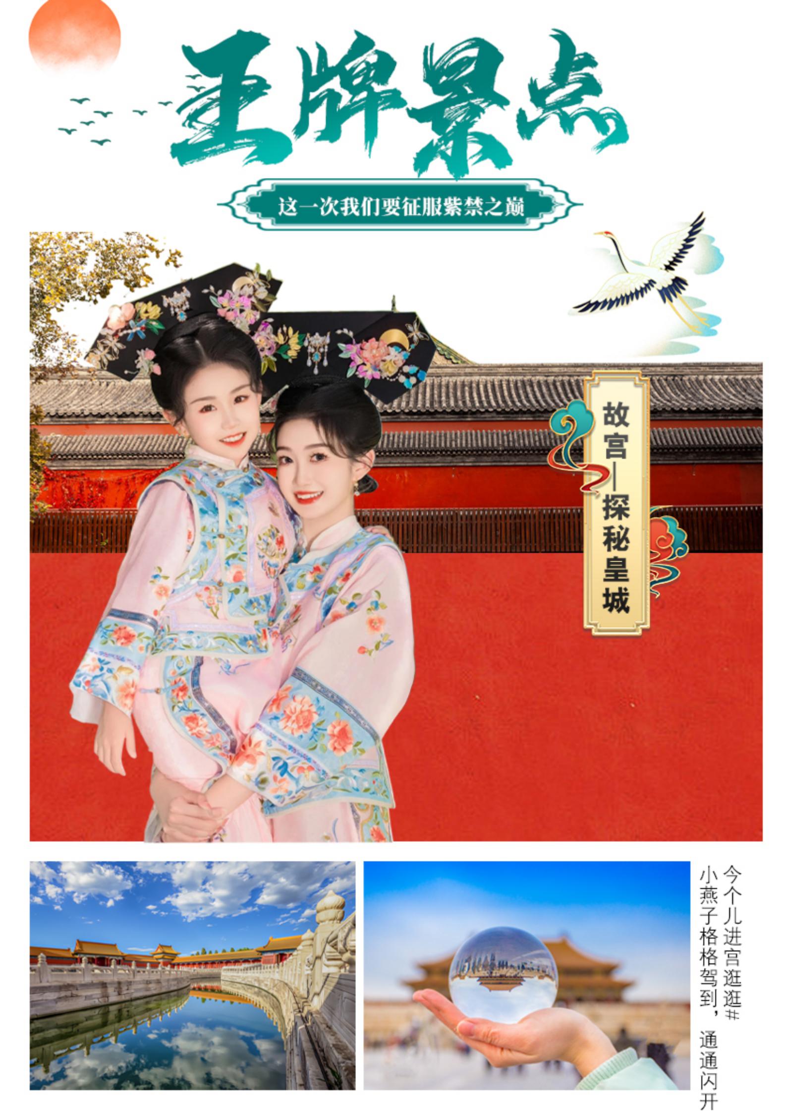 【北京故宫】全名北京故宫博物院,旧称为紫禁城,位于北京中轴线的中心,是中国明、清两代24位皇帝的皇家宫殿,是中国古代汉族宫廷建筑之精华,无与伦比的建筑杰作,也是世界上现存规模大、保存为完整的木质结构古建筑之一。