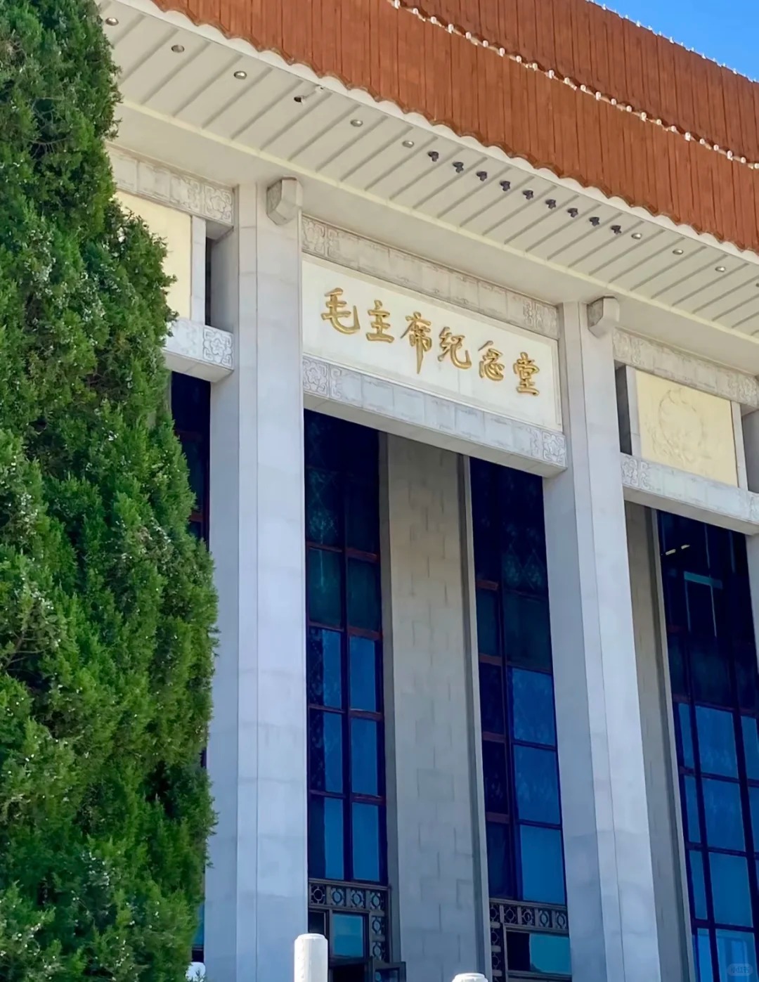 【毛主席纪念堂】(政策性关闭请外观)位于天安门广场人民英雄纪念碑南面。1977年5月落成,占地57000多平方米,总建筑面积为28000平方米。主体呈正方形,外有44根福建黄色花岗石建筑的明柱,柱间装有广州石湾花饰陶板,通体青岛花岗石贴面。屋顶有两层玻璃飞檐,檐间镶葵花浮雕。基座有两层**,台帮全部用四川大渡河旁的枣红色花岗石砌成,四周环以房山汉白玉万年青花饰栏杆。